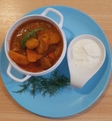 Суп Закарпаття приготовлений із м'яса, солодкого перцю, меленої паприки, помідорів, картоплі, моркви та спецій